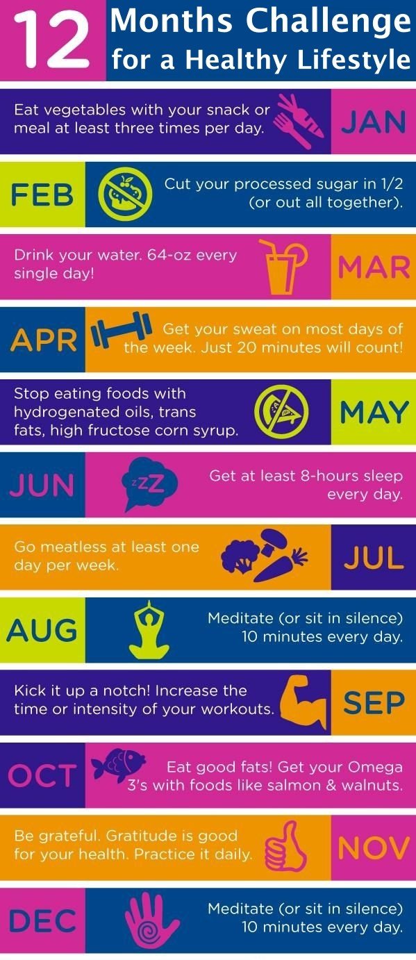 Every month would be a new challenge and maybe at the end of each month you will adopt a new healthy habit.