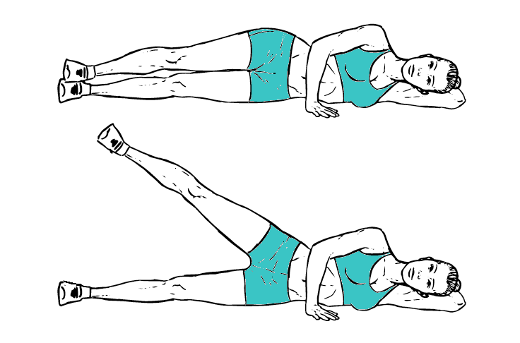 - Now raise your leg above to about 4 inches from the ground. Your abs should be tight.
