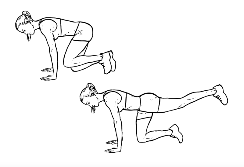 - Get back into the starting position and repeat with the right leg.