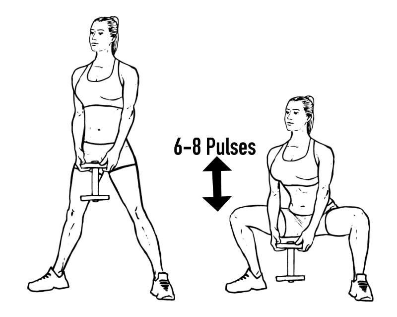 - When in a squat position, pulse up and down (4-6 times).