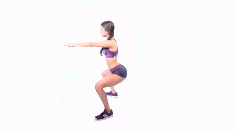 Stand with your feet wide apart, hands out in front. Squat, keeping legs apart and hands in front of you. Make ten moves up and down, before returning to the starting position. Repeat the exercise 15 times.