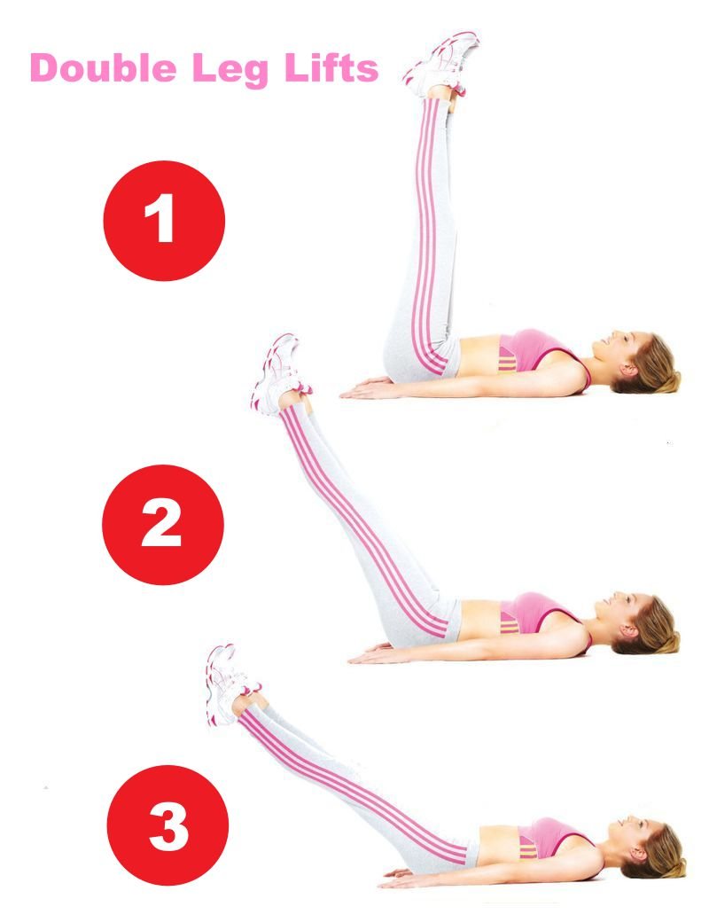 - Lower your legs until they almost touch the floor and then lift them up to the starting position.