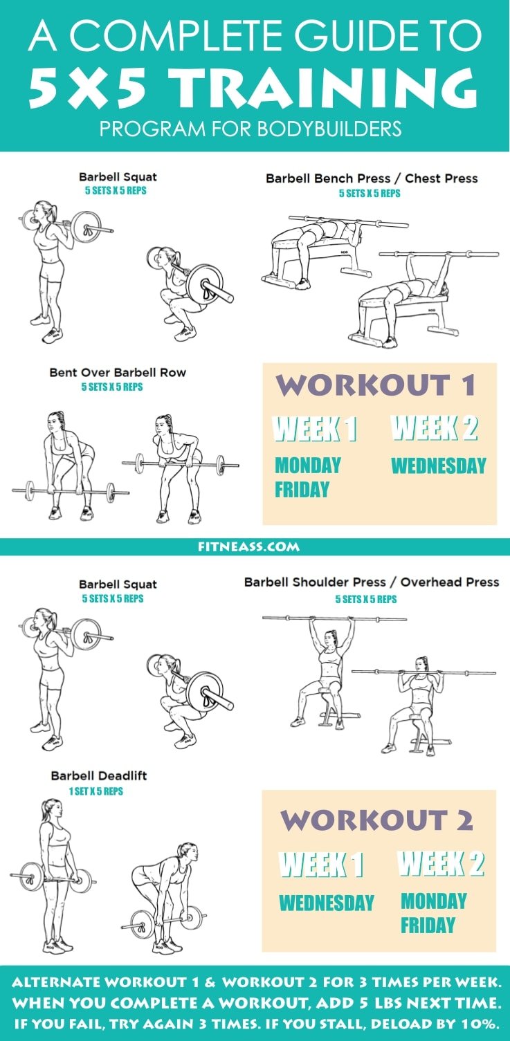 One thing you will notice with this training protocol, however, is that you will perform barbell squats every time you exercise and workout. Oh, and by the way, just so you know, the 5 x 5 title basically refers to the fact that you perform 5 sets of 5 reps per exercise.