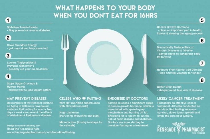 It requires you to stay away from food about 16 hours a day, including your sleeping time. In the rest of the day (8 hours) you can eat healthy foods in a normal amount (don’t exaggerate!).