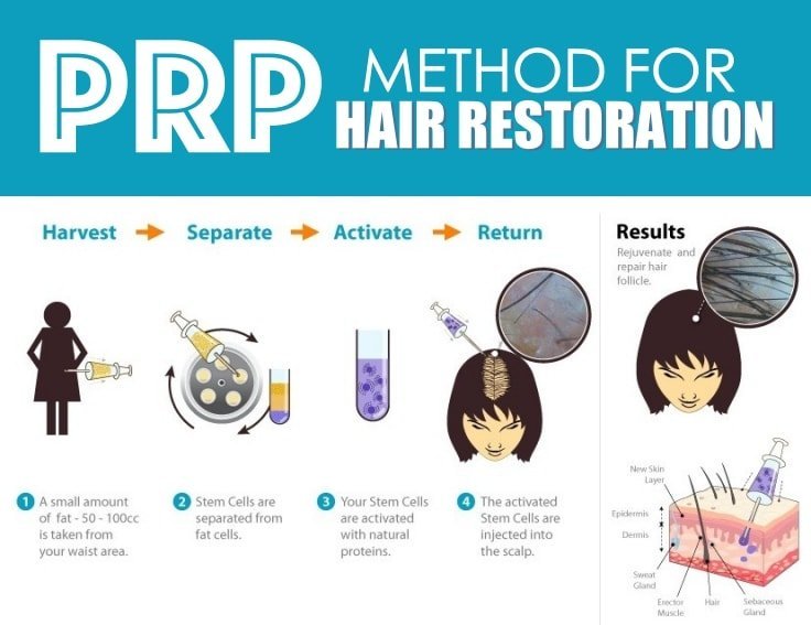 Another method for hair restoration is Platelet-Rich Plasma (PRP) therapy. This is a treatment that stimulates natural hair growth and it involves following these 4 steps: