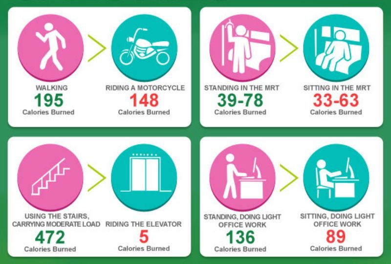 Standing burns more calories and increases calorie expenditure by 50% than sitting.