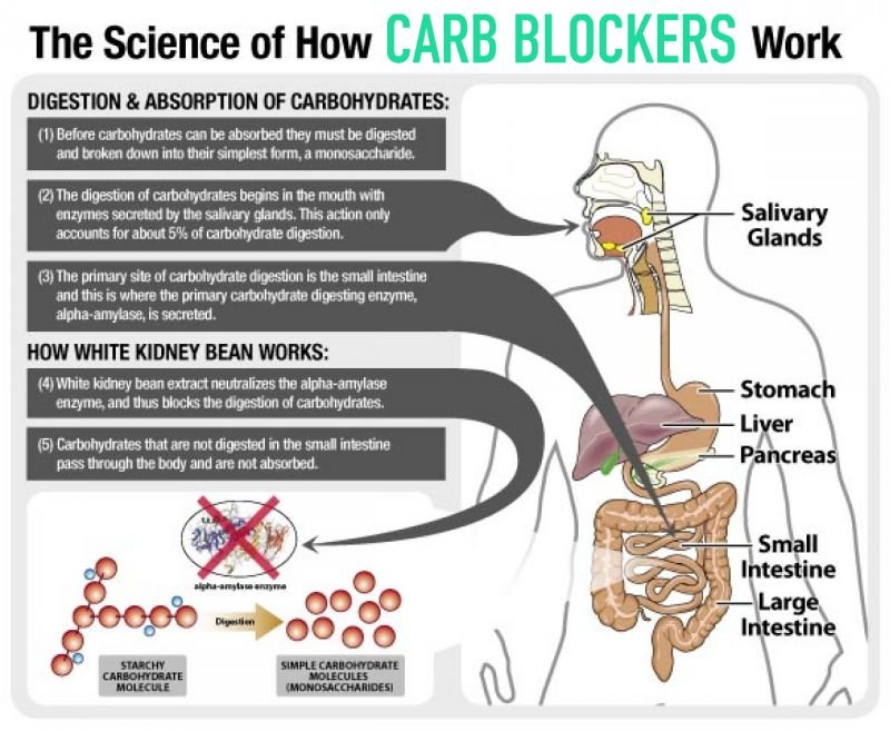 Carb blockers are an extract of white kidney beans and they’ll actually block the enzyme amylase along your intestinal tract. By blocking or inhibiting the enzyme amylase you won’t absorb quite as much carbohydrate.