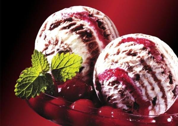 Wash the fresh cherries, remove pits and crushed, then mix with yogurt and put in the freezer. Serve with fresh mint and a teaspoon of heavy cream.