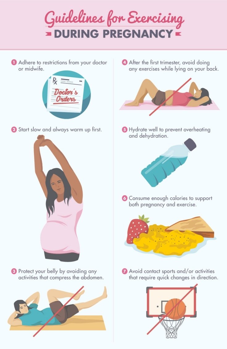 Still, it’s important to practice safe exercise during pregnancy. Here are several tips that will keep you and your baby safe while staying fit: