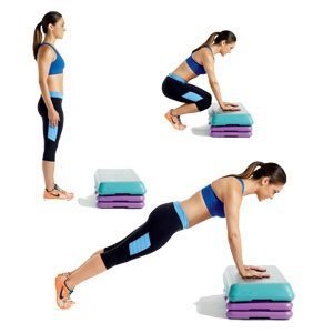 – Bend your knees, lift yourself a little bit and put your hands on the box;