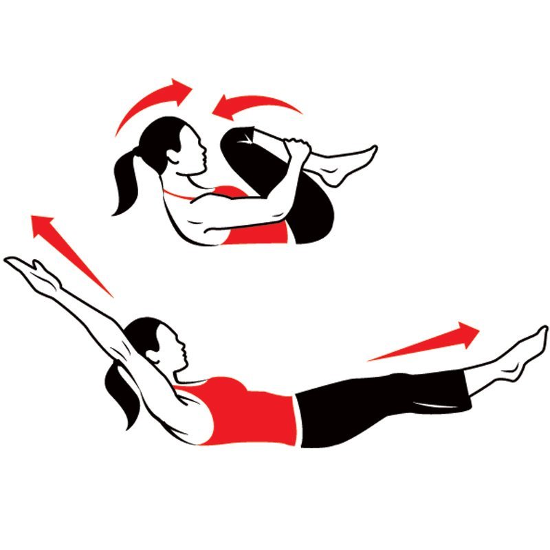 - Stretch your hands and lift your legs ensuring they are at a 45-degree angle from the floor.