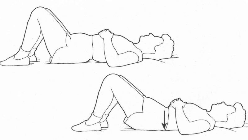 - While in a neutral position, inhale deeply to move the tailbone towards the floor thus creating space between the floor and the spine.