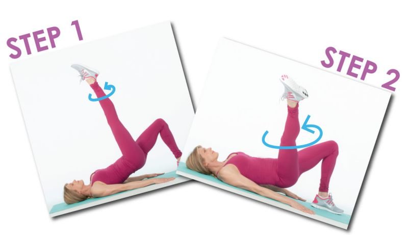 - Rotate the hips to lift your legs as high as possible from the floor.
