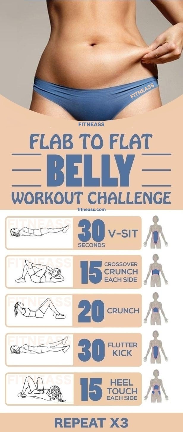 This flab to flat belly workout challenge consists of five exercises that specifically target each and every muscle of your core.