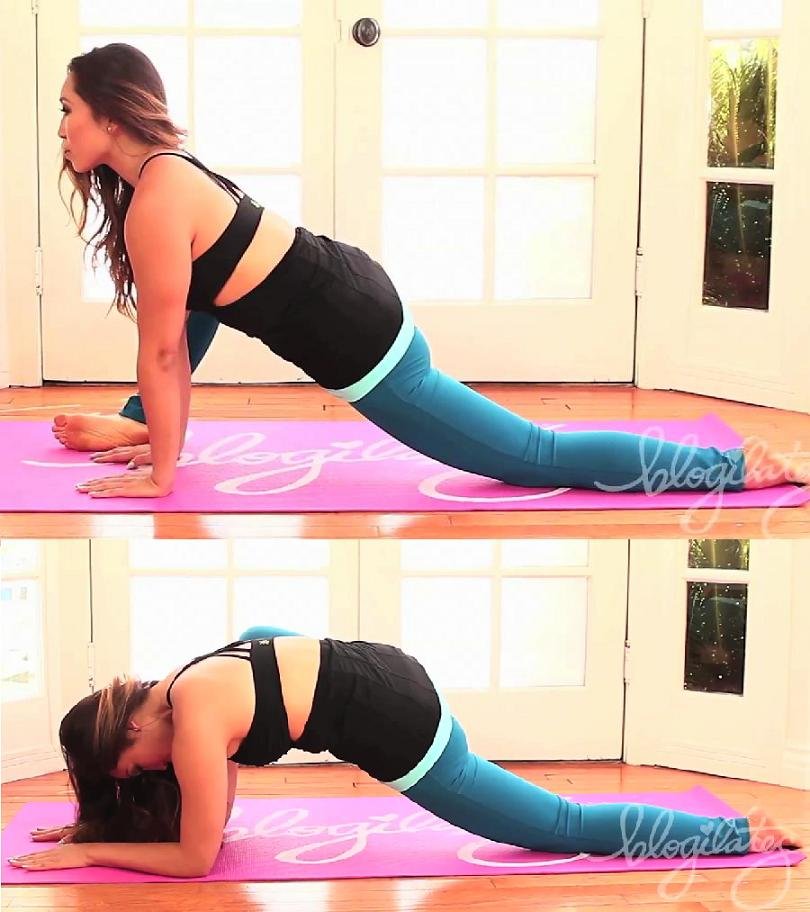 - If you want to get more uncomfortable and more flexible place your elbows and forearms onto the mat. This is pretty advanced so if you can’t get here is totally OK.