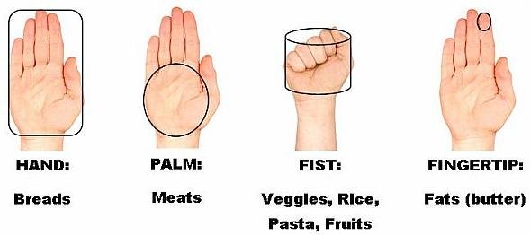 - one small bowl of rice (2 fists size bowl) = 2 portions;