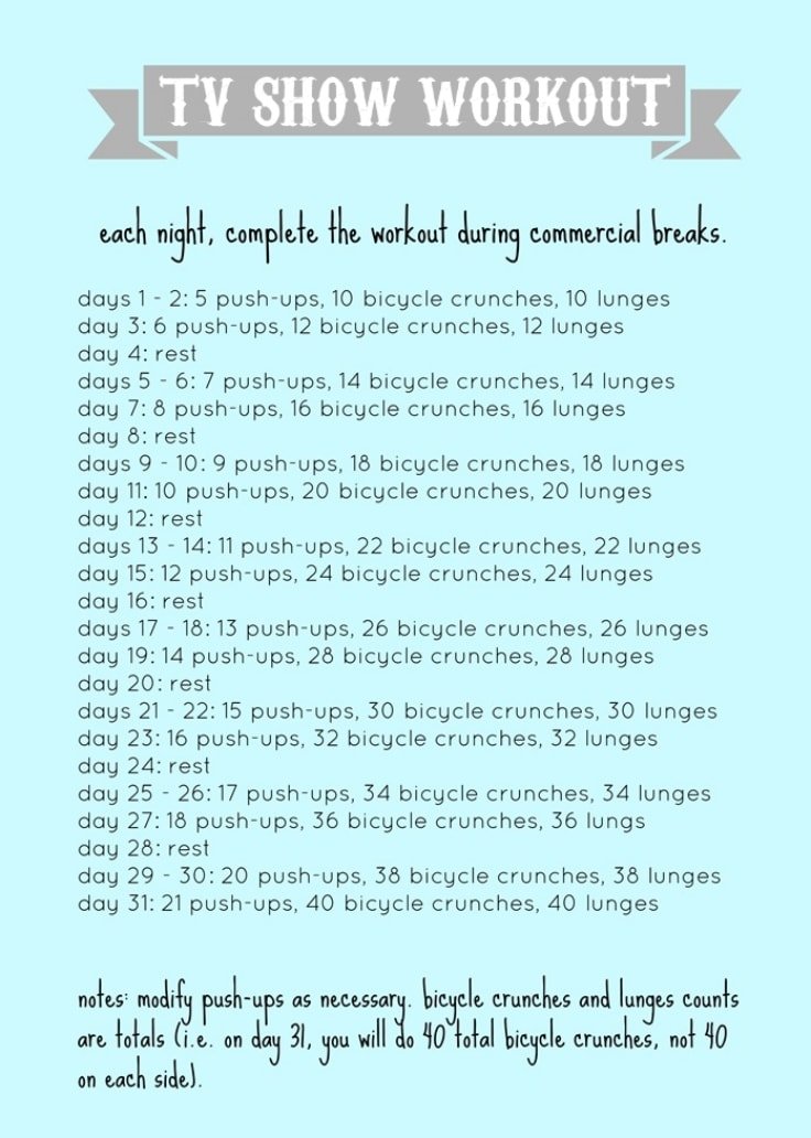 If you’re a Game of Thrones fan, do this GoT workout. Or search online for your favourite one because there are workouts for almost any TV show. Here is a workout you can use for any TV show: