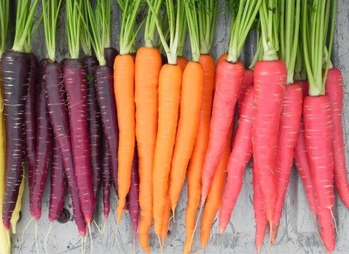 Carrots are orange, but can also be red and purple. Brightly colored vegetables have many health benefits, so violet carrots improve memory and keep heart health. Reds turn rich in lycopene, an antioxidant that gives the red color and enhances the immune system. Violet cauliflower contains 99 percent of the daily dose of vitamin C that you need, while orange has 25 percent more vitamin A than normal.