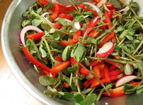 Green plant called purslane, contains 6 times more vitamin A than spinach and 7 times more beta carotene than carrots. Salad with purslane, cream and garlic dish is ideal for the future.
