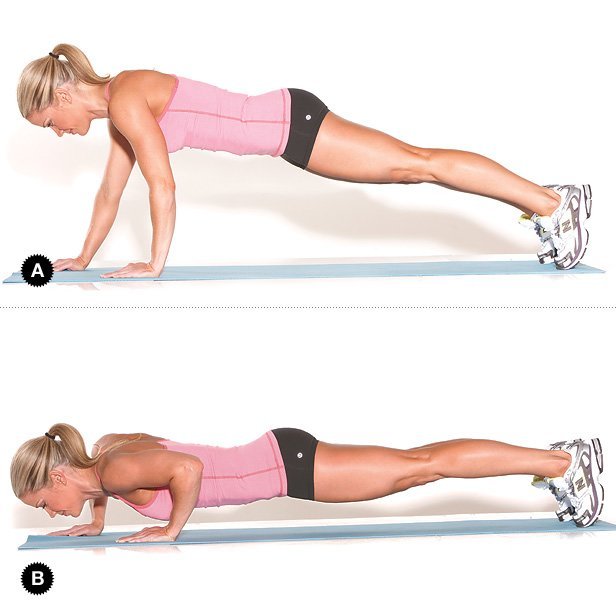 - When you touch the floor with your elbows return slowly to the starting position.