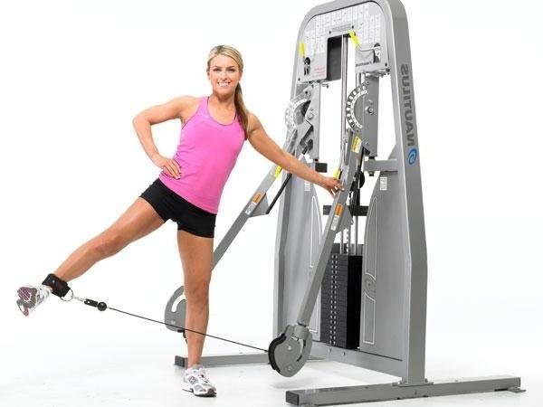 Attach one end of the band to a stationary object and wrap the other end around the ankle closest to it. Start with the leg abducted and pull it in, across your body, keeping the knee straight. Keep the hips level and return to starting position. Do 2 sets of 10 to 20 reps.