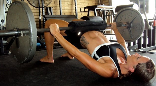 The movement is the same as for glute bridges, but now you add some weight. Start with what feels comfortable for you and do 2 sets of 10 to 20 reps.