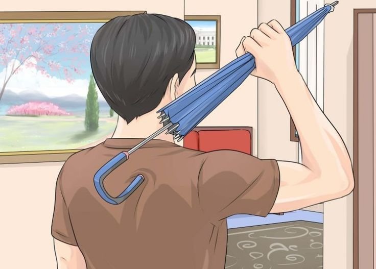 Take the help of an umbrella with a curved handle or a specially designed massage handle can help with your back problem. If you have a knot on the back of your shoulder, place the handle of the umbrella on top of the knot and then press slowly upon it by pushing it down.
