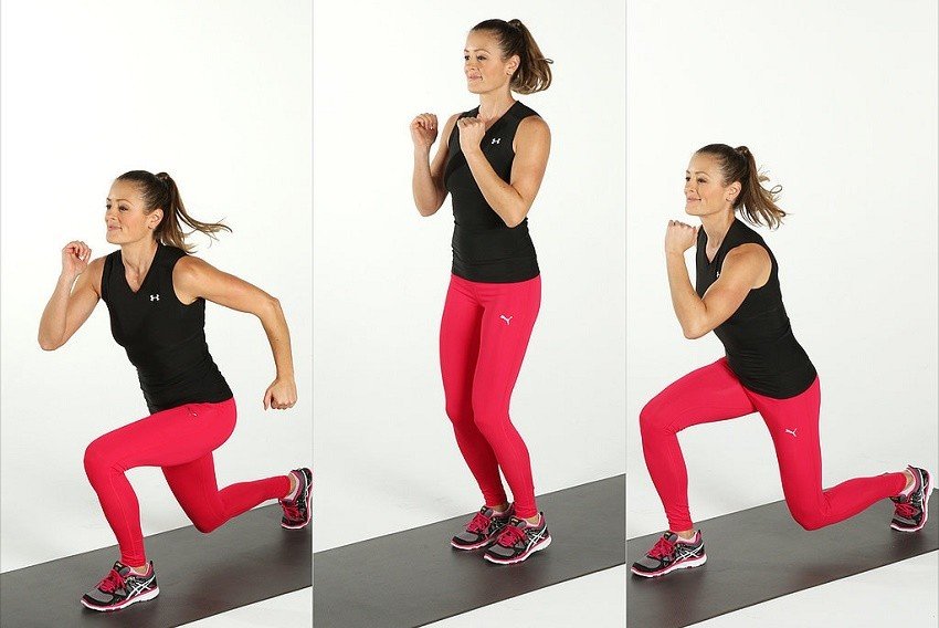 Start in a basic stationary lunge, jump straight up and alternate legs. Keep in line your ankle and knee. Upper body should be straight up. This HIIT workout is perfect for your quads.