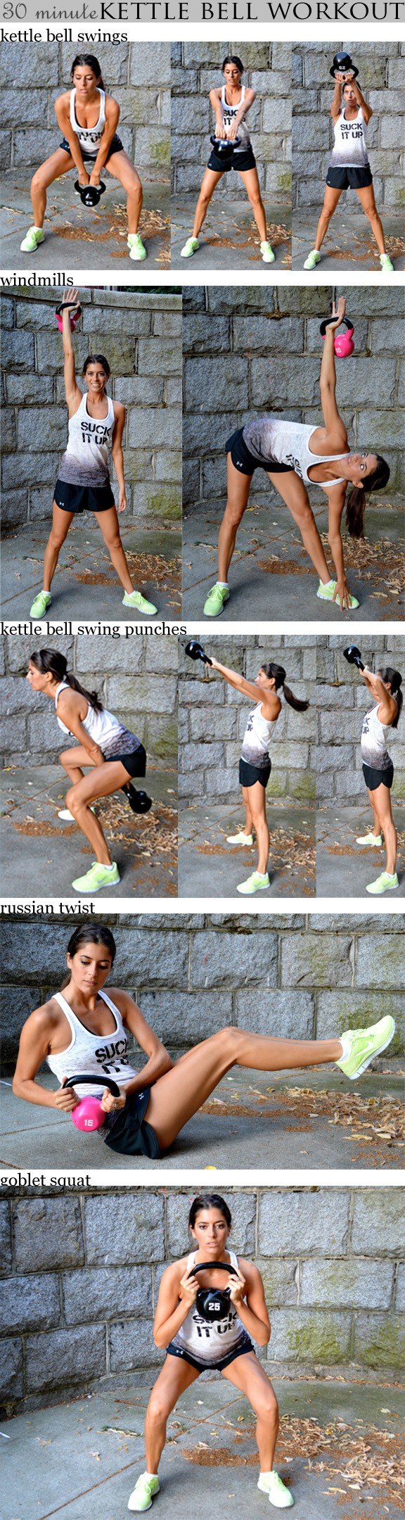 One of the most popular exercises in the kettlebell workout is the move around body pass. This exercise involves holding the kettlebell in front of you and releasing one hand to move the kettlebell behind you and then forward again. This exercise around your back is one rep and you do it for at least 10 before stopping for a rest. This will work out your arms, shoulders and back.