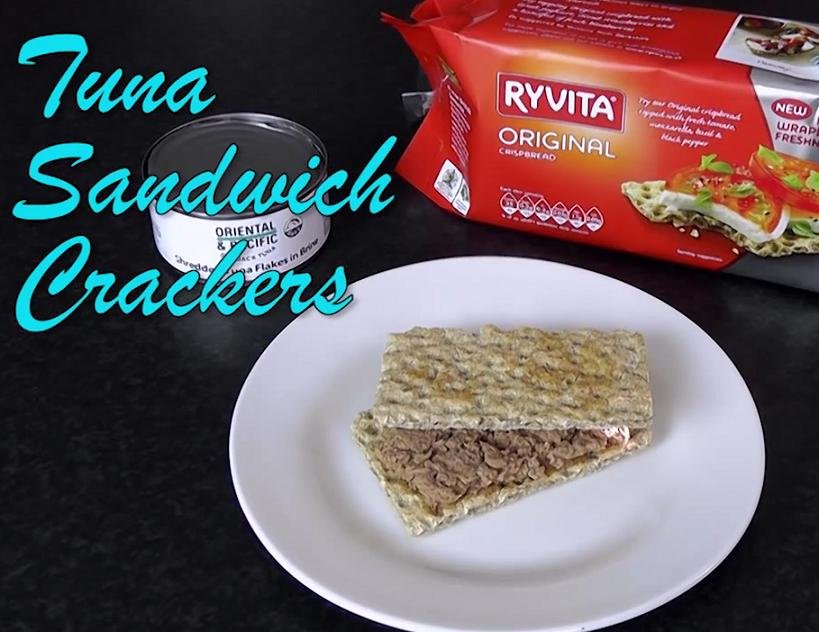 Instead of choosing bread which is more dense and has more calories, go for whole grain or whole wheat crackers. These crackers typically have about 35 calories each. For this sandwich you’ll need only 2 whole grain crackers and 1/4 can or 30 g tuna.