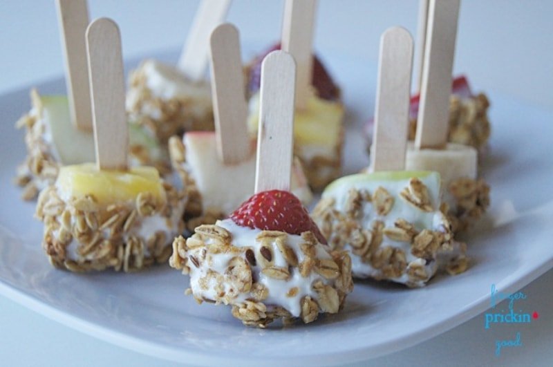 Check out the recipe for Yogurt And Granola Fruit Kabobs.