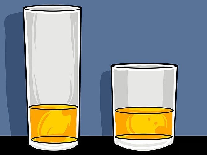 If you want to lose weight effortlessly or your goal is to cut down calories from drinks because you might be a Coke addict or a fizzy drink addict, then opt for a taller glasses instead of short glasses. Tall skinny glasses apear to hold much more than short glasses. Your brain will trick yourself into believing that you’re actually drinking more from tall glasses in comparison with short glasses.
