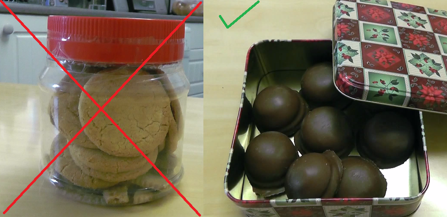 Try not to keep your snacks in a see through container because when you can see it you want to grab it and eat it right away. Instead opt for containers that you can’t really see through and when is out of sight it will also be out of your mind.