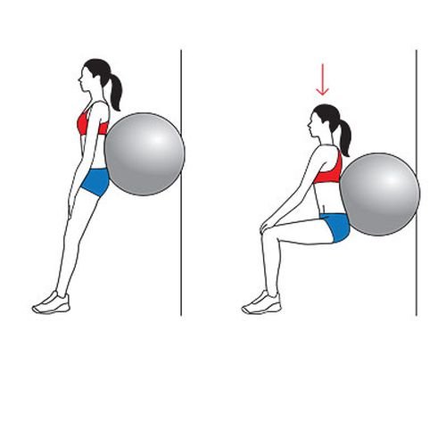 - Put your hands on your thighs and begin to squat, without dropping the ball.