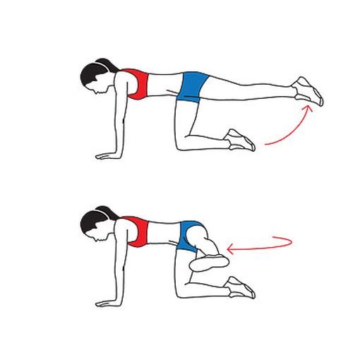 - Kneel down on all fours and stretch one leg back.