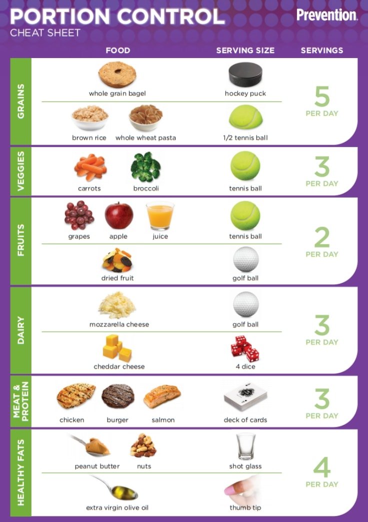 Here is a cheat sheet from Prevention.com to help you with portion control: