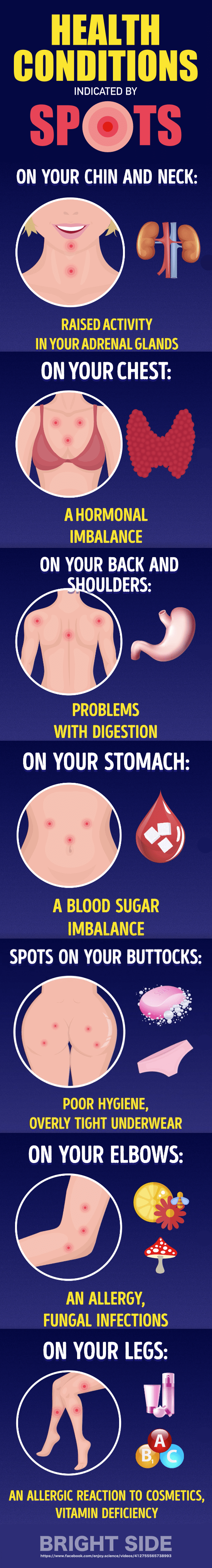 This infographic was put together by Florin Nita and is based on the video from BrightSide. We believe this is a great way to share awareness on red spots on skin that might hide bigger health issues.