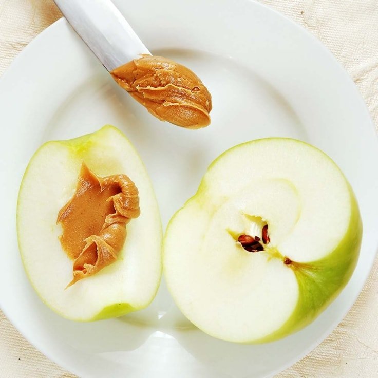 22. 1⁄2 small apple with 1 tsp soy butter (46 calories) .