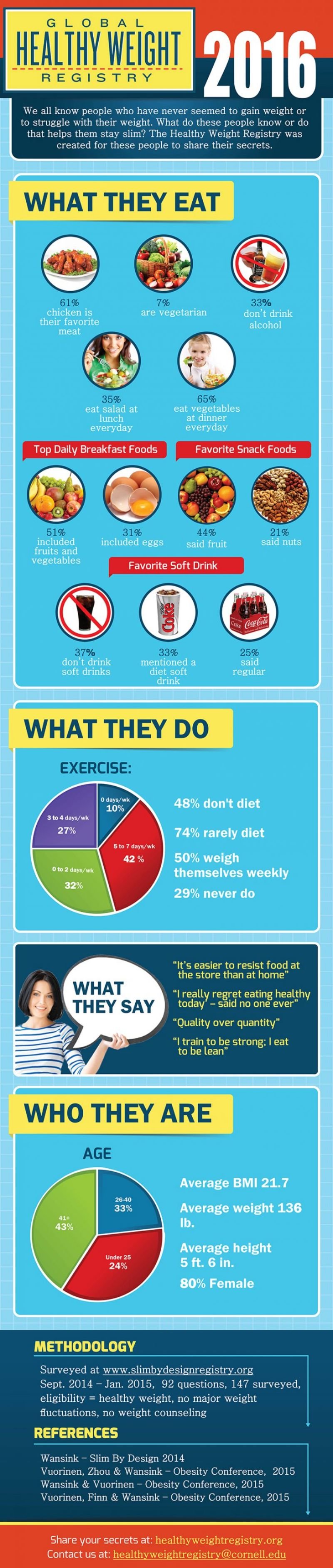 Here is an infographic with the survey’s results on what people who stay slim without even trying are eating and doing:
