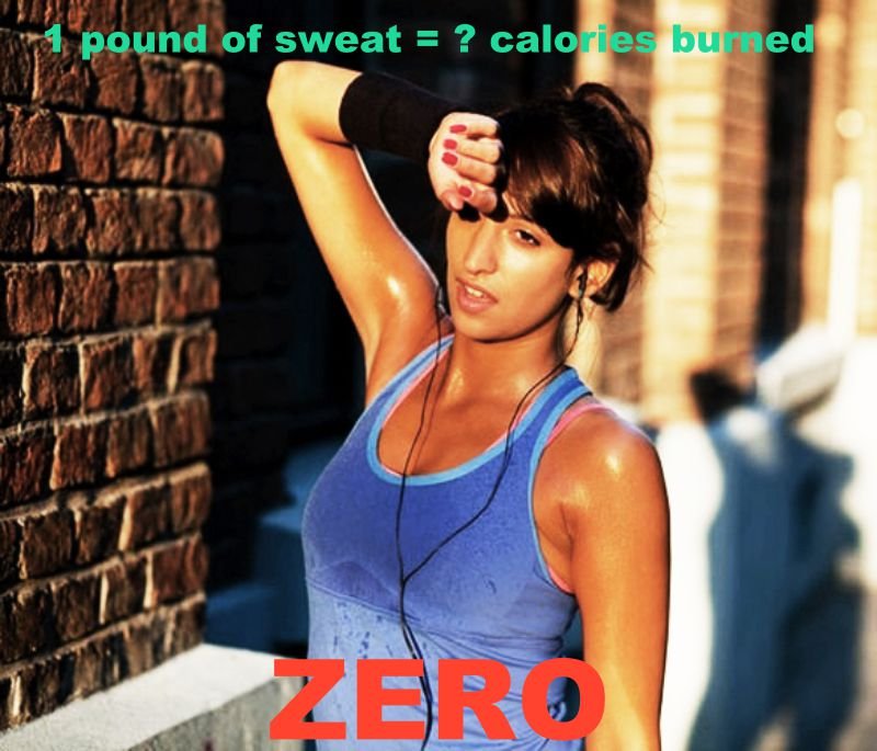 Our body’s temperature is controlled through sweating, so when we sweat, we cool down our skin, we cool down our entire body’s temperature. It’s good to know that sweating is not the most accurate way to measure how intense your workout is or how many calories you’ve burned. As the picture says, you may sweat pounds without burning almost any calories.