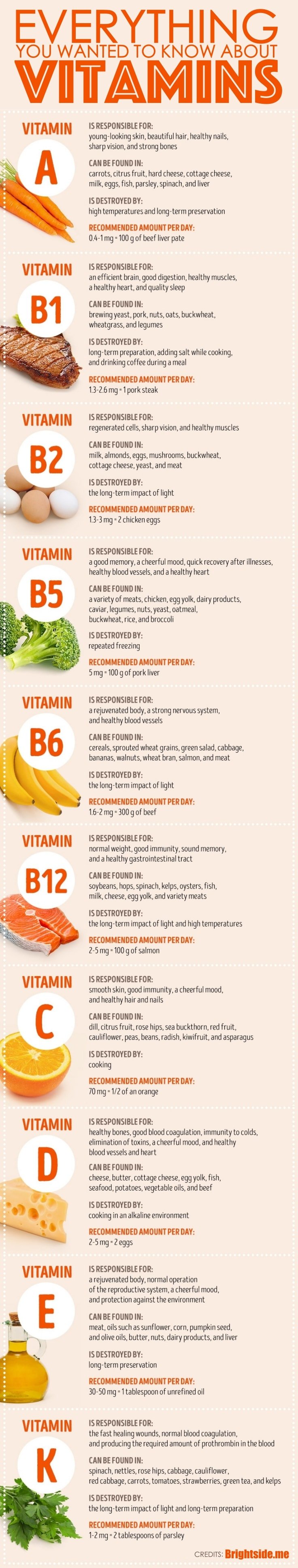 Most vitamins have health benefits to individuals such as healing flu, wrinkle reduction, clearing of spots and acne from the face.