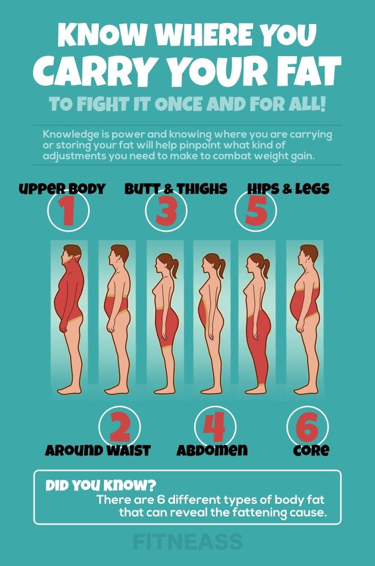 There are 6 main areas where the fat can be stored on your body. And each one of them should be approached differently.